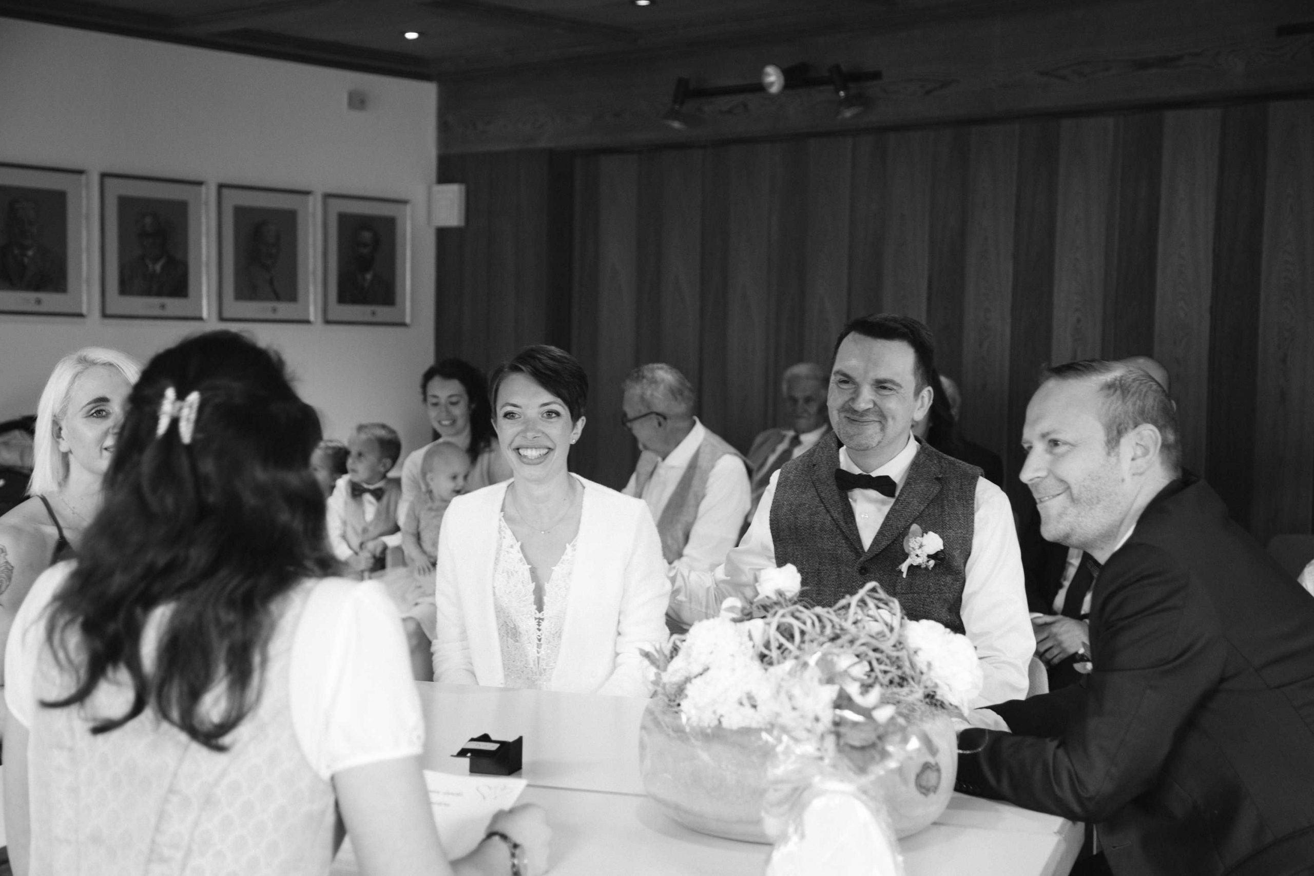 Die Trauung im Haus des Gastes war geprägt von tiefer Liebe und Freude. Die Bilder erfassen die innige Verbindung zwischen Alina und Stephan und fangen die berührenden Augenblicke ein, als sie sich das Ja-Wort gaben.