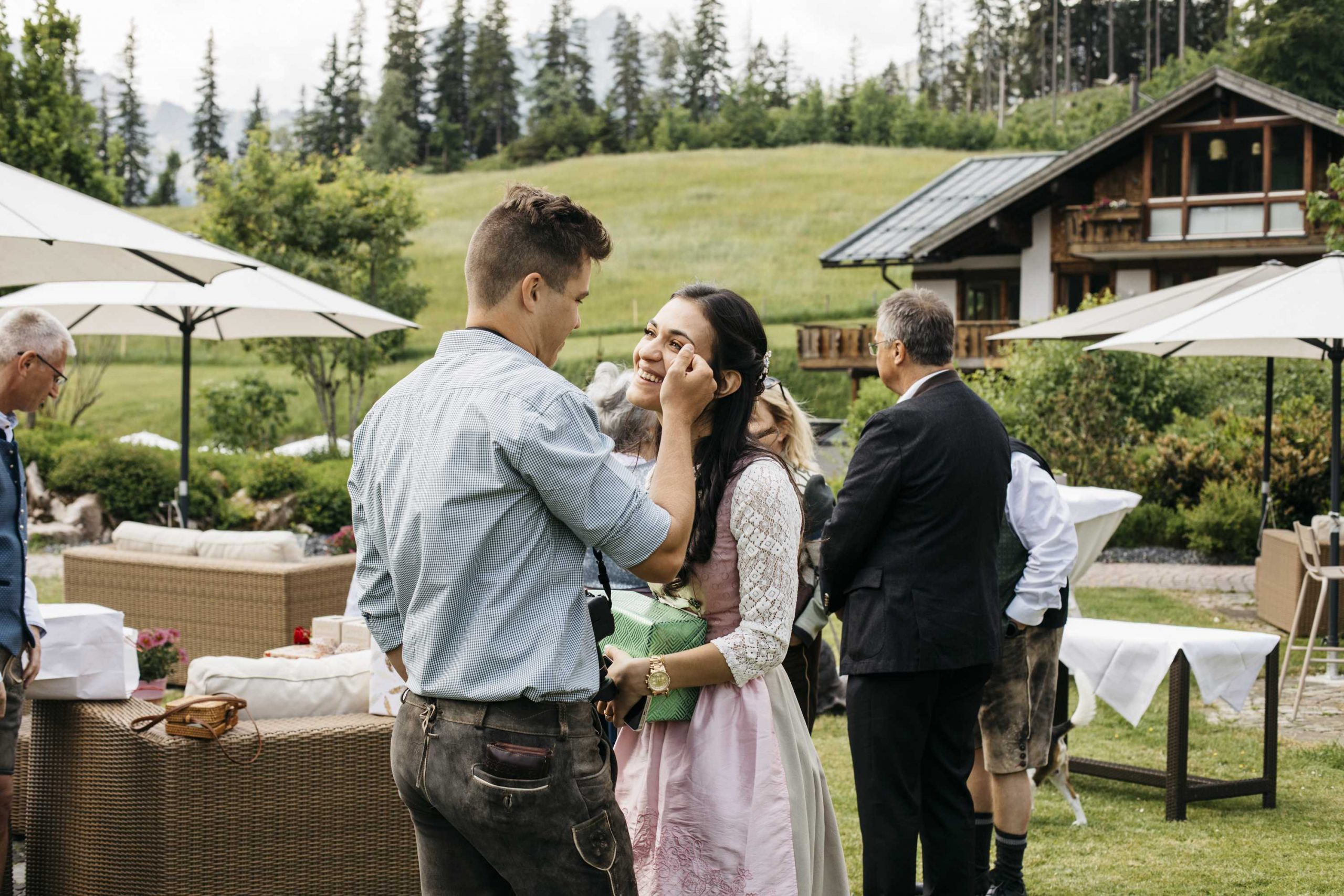 Danach begab sich das frisch vermählte Paar in Begleitung ihrer Gäste zum Hotel Schlossanger Alp. Dieses Hotel ist nicht nur ein beliebter Ort für Reisen und Entspannung, sondern auch mein ursprüngliches Zuhause als Fotografin. Ich habe hier bereits viele Aufnahmen gemacht, doch jedes Mal, wenn ich zurückkehre, entstehen einzigartige und besondere Bilder.