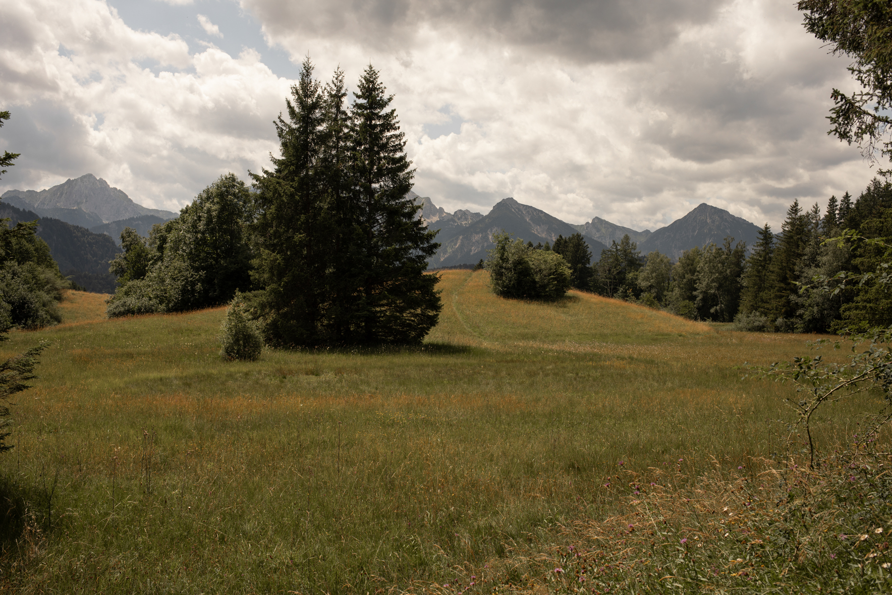 Sabine und ich haben uns für den Galgenbichl in Füssen entschieden. So makaber wie der Ort klingt, ist er ganz und gar nicht. Da gibt es Wiesen, Wald und Berge. Der Ort ist wirklich wie gemalt.
