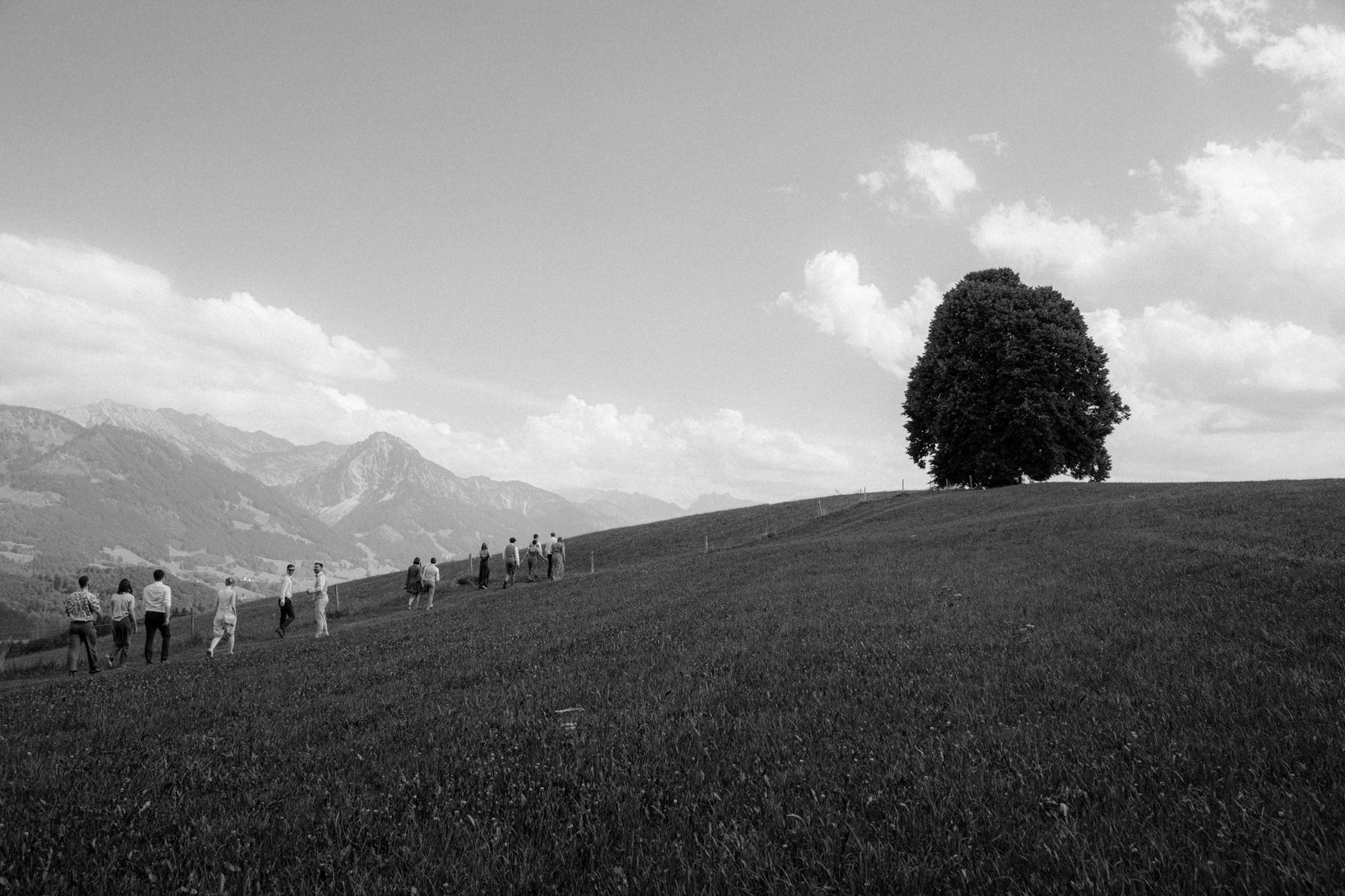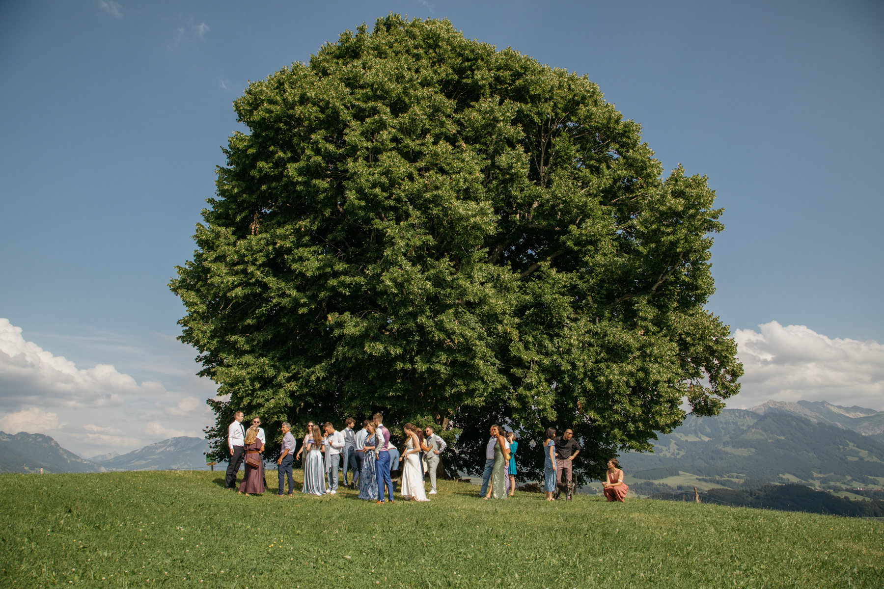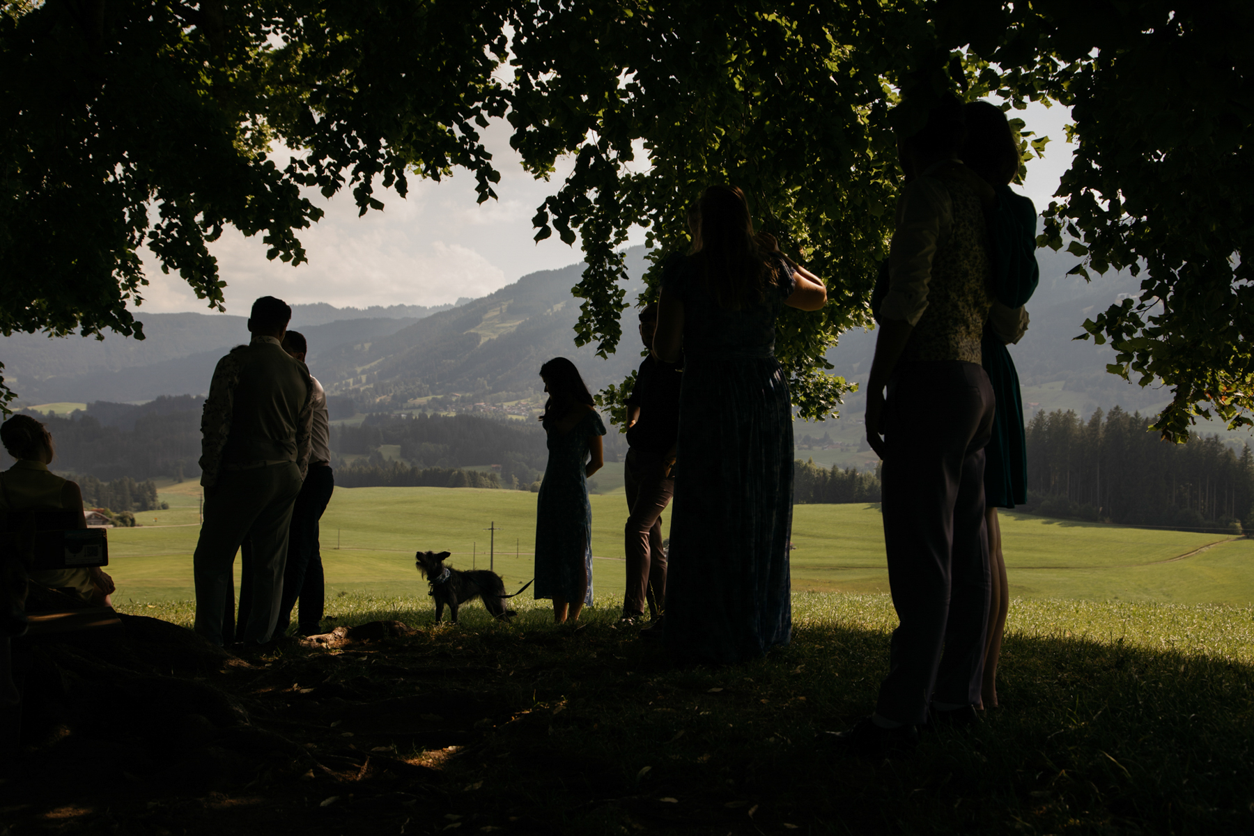Im Anschluss ging es zum Freistil in Ofterschwang, wo die ganze Hochzeitsgesellschaft kulinarisch verwöhnt wurde. Dazwischen haben wir einen kleinen Ausflug zur Wittelsbacher Höhe gemacht, wo ein einzelner Baum die schöne Landschaft prägt.