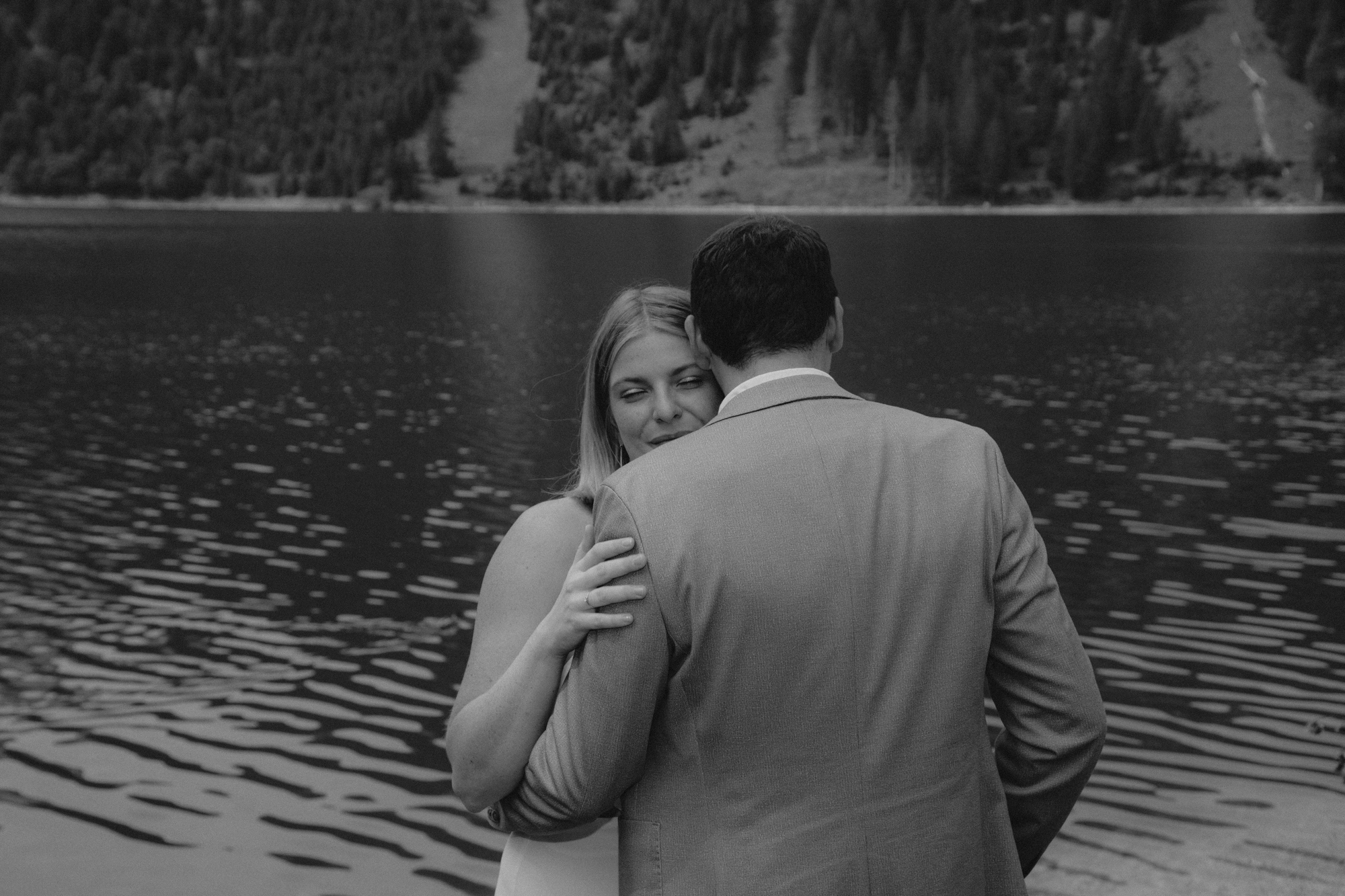 Die Kulisse dort ist einzigartig. Der klare See ist umgeben von Bergen und Bäumen. Ein einzigartiger Ort, um Bilder zu machen.
