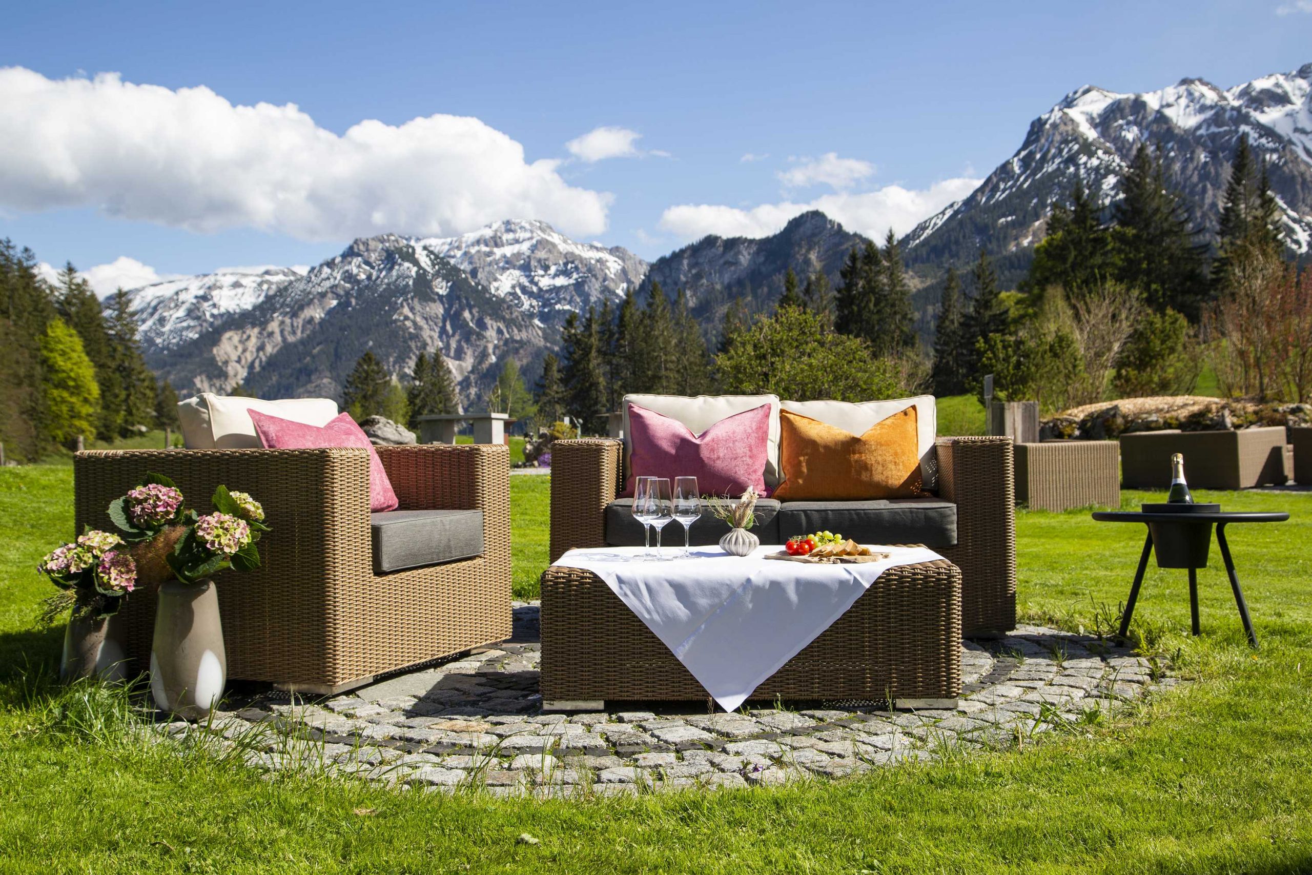 Ein Hotel, inmitten von Almwiesen, umgeben von den Allgäuer Alpen...